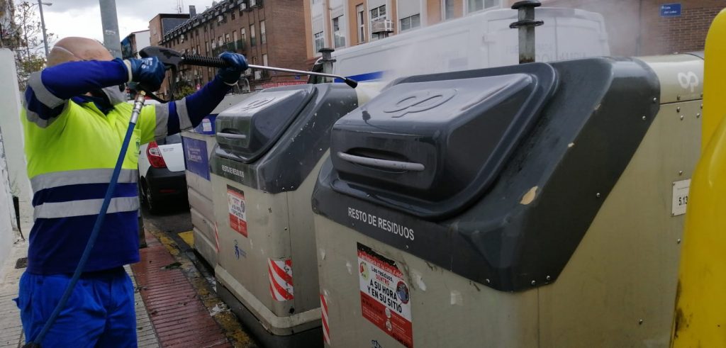 Algunas de las tareas que realiza este colectivo se centran en la limpieza y desinfección diaria de las asas de cada uno de los 1.210 contenedores que hay repartidos por toda la ciudad. Además, con una frecuencia semanal, se limpian con jabón desinfectante y equipos de hidropresión todos los buzones y plataformas de los contenedores de la vía pública.