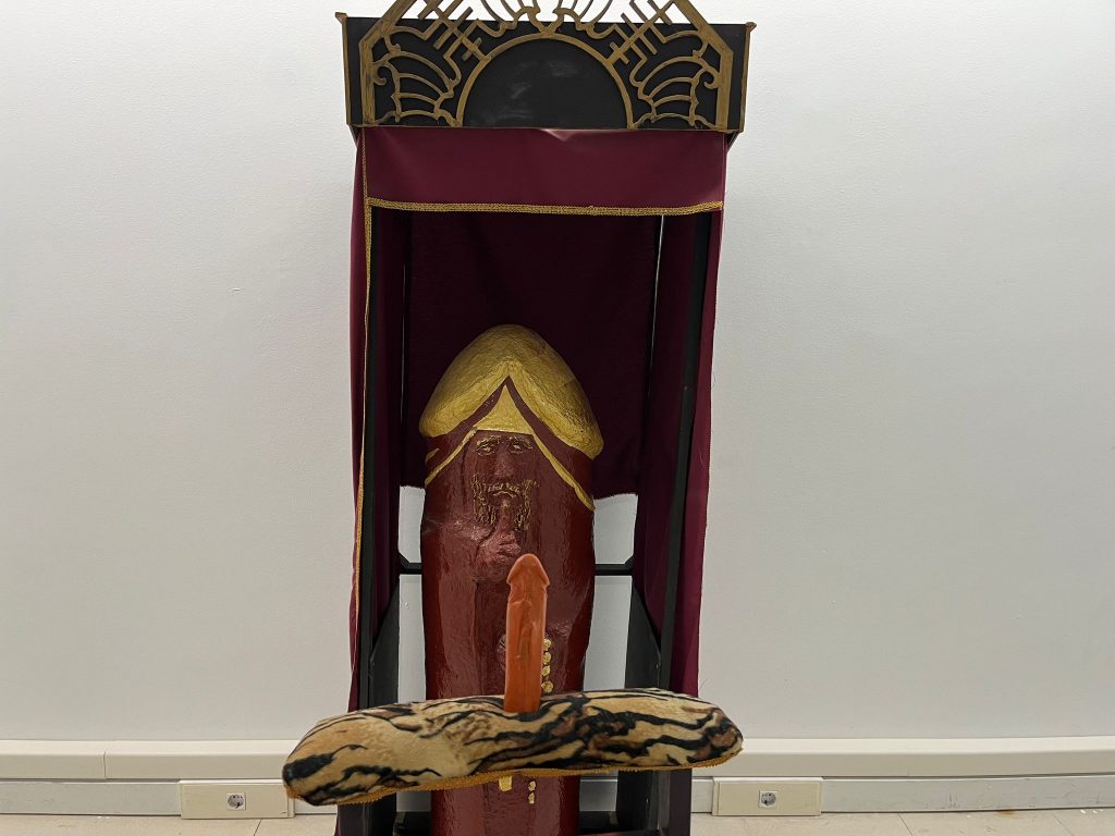 Se trata de ‘Explicaciones de qué. Cuando el arte impugna a lo real’, del Colectivo Artistas del Sur (CAS), instalada en el Centro de las Artes Tomás y Valiente de Fuenlabrada, que contiene desde un Cristo crucificado con la cabeza de un muñeco, o un pene simulando a un sacerdote y una persona que se va a confesar.