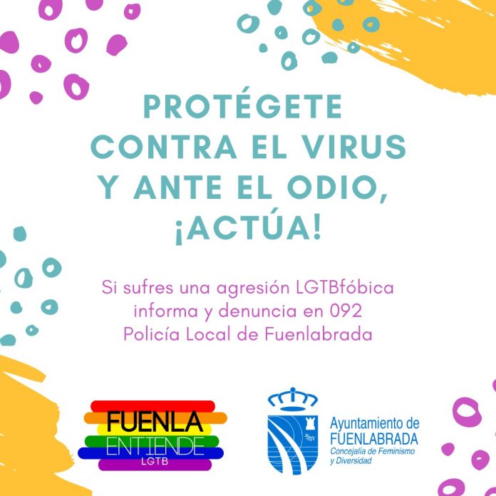 Protégete contra el virus y ante el odio: actúa es el nombre de la campaña lanzada por el Ayuntamiento de Fuenlabrada, y que se desarrolla esta semana, para sensibilizar a la población, sobre todo a los más jóvenes, contra los delitos de odio por razón de sexo.