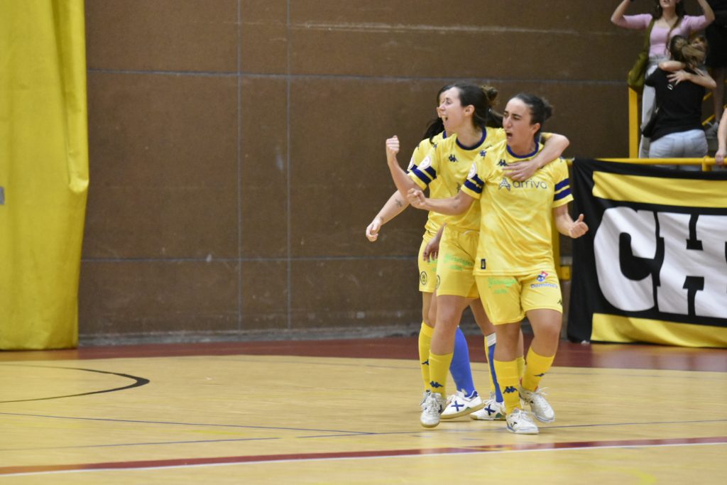 Varias jugadoras del Arriva Alcorcón celebran uno de los goles (foto: Futsal RFEF)