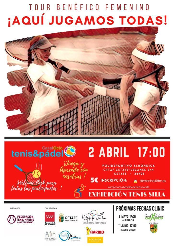 Tras el exitoso resultado de la primera cita, organizada en Galapagar, este tour benéfico llega ahora a Getafe dirigido a mujeres y niñas de todas las edades y niveles durante una jornada que contará también con minitenis, juegos en pista, partidos y una exhibición de tenis en silla.