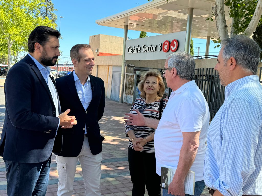 El portavoz del grupo parlamentario popular en la Asamblea de Madrid, Carlos Díaz-Pache visitó este martes el apeadero de Cercanías del Sector 3 de Getafe en compañía del portavoz del Partido Popular de Getafe, Antonio José Mesa. Y como era previsible, durante el acto arreciaron las críticas hacia la alcaldesa del PSOE, Sara Hernández, especialmente por su complacencia con la falta de inversión del Gobierno de Sánchez en un servicio de Cercanías marcado en los últimos tiempos por una retahíla de incidencias y averías que provocan la desesperación de los sufridos usuarios.