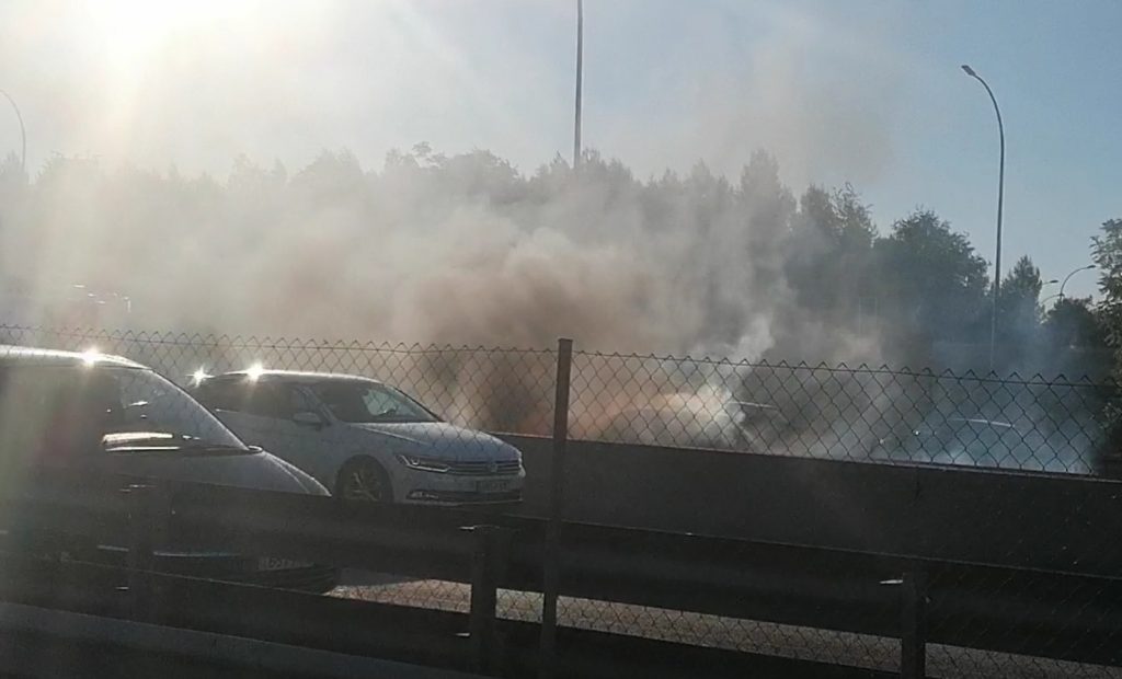 (GETAFE) Bomberos apagan el aparatoso incendio de un coche en la A-42