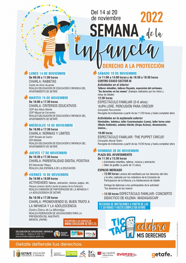 El Ayuntamiento de Getafe, a través de su Delegación de Educación e Infancia, celebra del 14 al 20 de noviembre la Semana de la Infancia, que en esta edición centrará la atención en el Derecho a la protección.