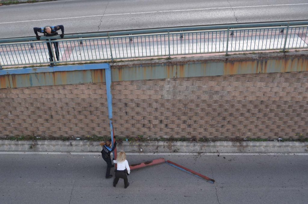 El desprendimiento, provocado con toda probabilidad por el viento, se ha producido a primera hora de la tarde de este miércoles. Parte de la cornisa metálica del puente se ha venido abajo, cayendo sobre la calzada, lo que ha obligado a los agentes a cerrar de forma momentánea la circulación en este tramo hasta que se retire definitivamente de la vía.