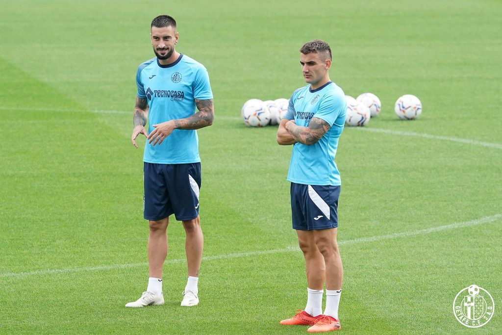 Cabaco, a la izquierda, junto a Arambarri (Getafe CF)