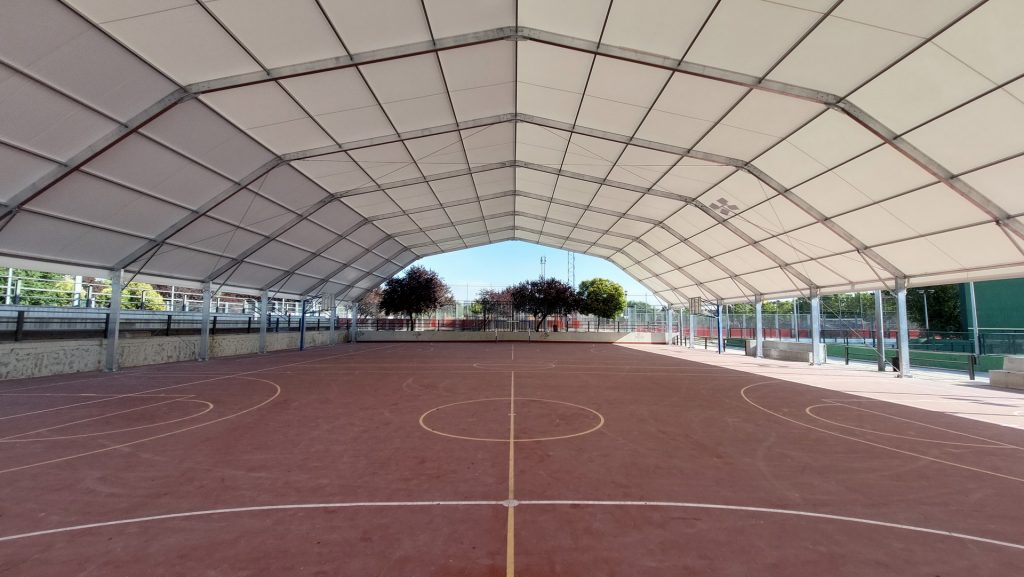 El plan de mejoras en instalaciones deportivas municipales puesto en marcha por la delegación de Deportes del Ayuntamiento de Getafe se ha centrado en las últimas semanas en el complejo Juan de la Cierva, donde ya se han completado las labores de montaje de la cubierta textil de la pista polideportiva. A continuación se procederá a instalar también una cubierta en tres de las pistas de pádel de las que consta esta instalación deportiva.