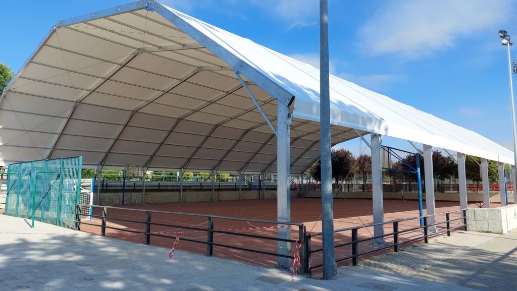 La delegación de Deportes del Ayuntamiento de Getafe está llevando a cabo durante esta semana las labores de montaje de la cubierta textil de la pista polideportiva en Juan de la Cierva, que avanzarán también durante los próximos días con la instalación de la cubierta en tres de las pistas de pádel de las que consta esta instalación deportiva.
