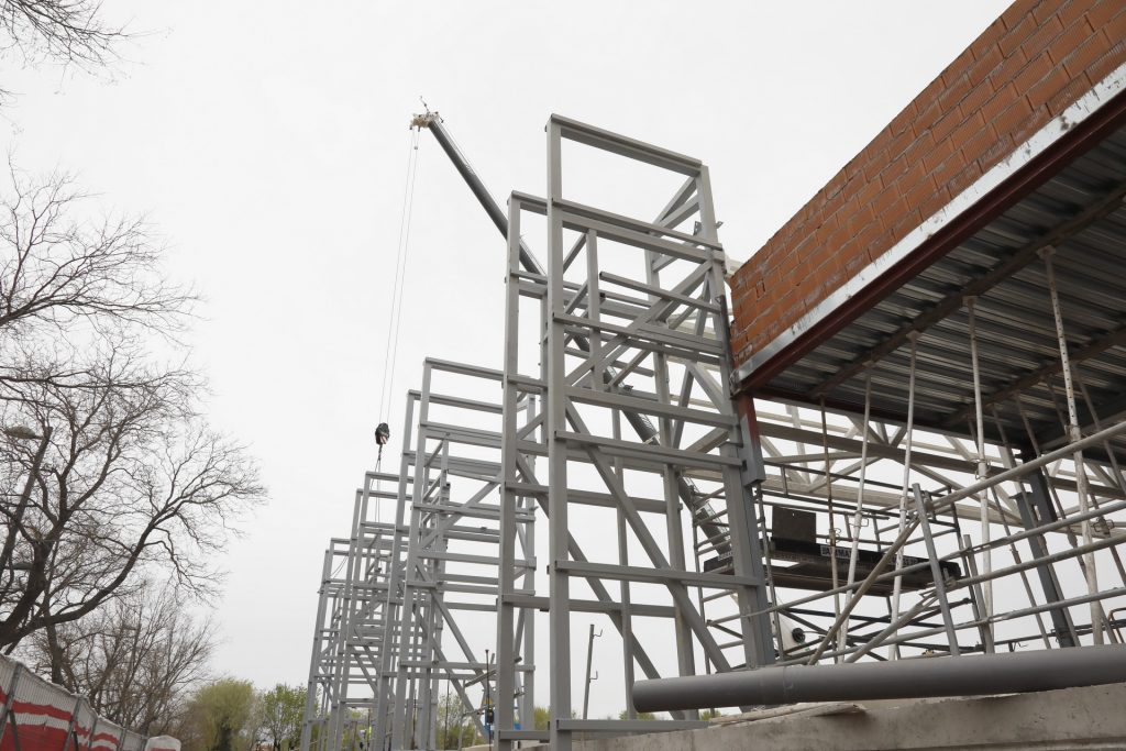 En estos días se está procediendo a la colocación de la cubierta del complejo acuático, que además de una piscina de uso terapéutico albergará varias salas multiusos para impartir actividades y talleres. De momento se están colocando los pórticos estructurales (7 vigas de 36 metros) y a continuación se instalará la cubierta.