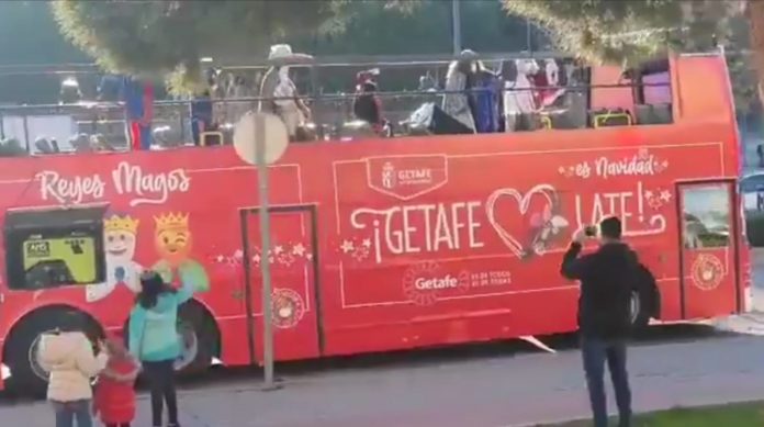Los Reyes Magos recorrieron 130 calles de Getafe durante cinco horas en dos autobuses descapotables y, aunque en principio el Ayuntamiento no quiso hacer público el itinerario ni el horario para evitar aglomeraciones, finalmente lo desveló un día antes.