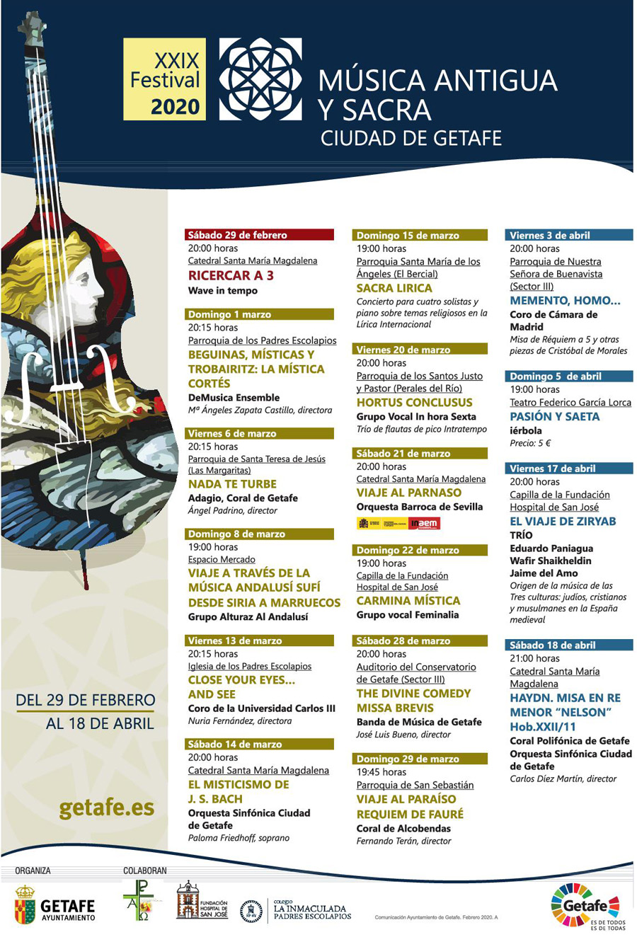 Este sábado, 29 de febrero, comienza la XIX edición del Festival de Música Antigua y Sacra de Getafe. Este año amplía el número del conciertos hasta 16.