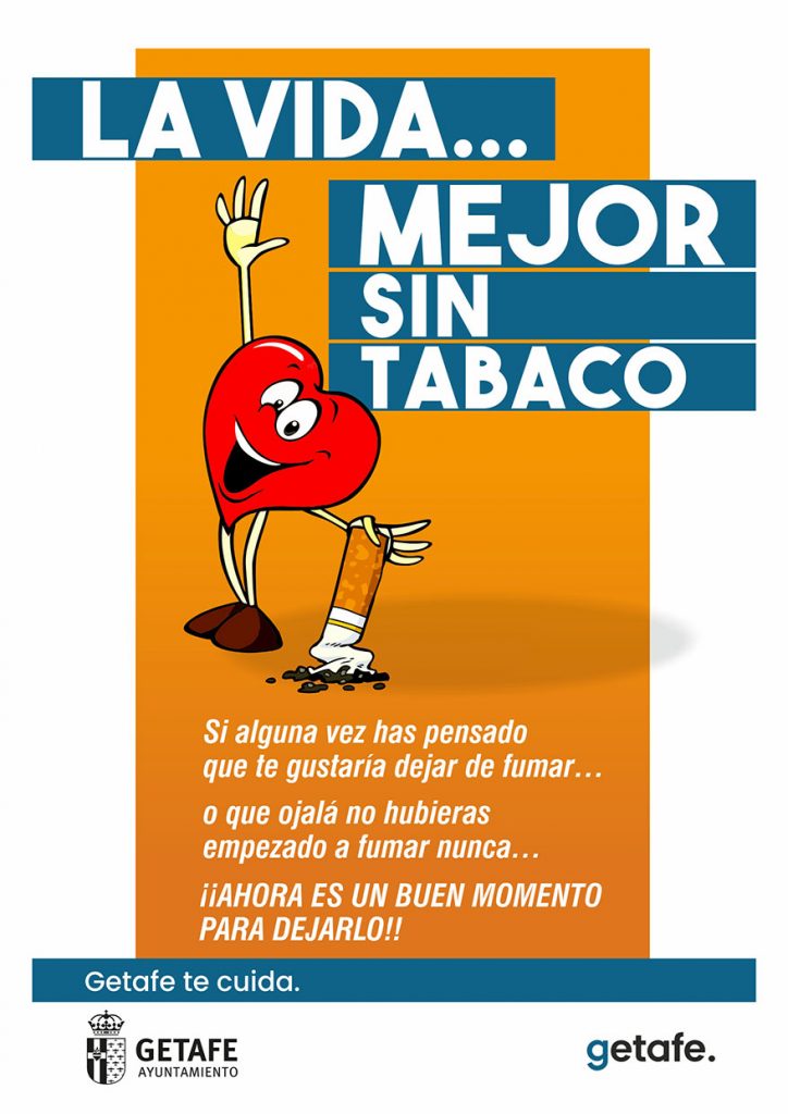 El Ayuntamiento de Getafe lanza una nueva campaña en la que propone un plan a los vecinos para dejar de fumar. La acción, promovida bajo el lema ‘La vida…mejor sin tabaco’, se realiza a través de las delegaciones de Salud y Deportes, en una acción compartida con Atención Primaria de la Comunidad de Madrid y la Asociación Española contra el Cáncer.