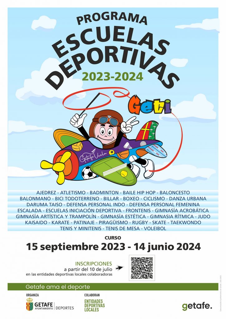 La relación completa de disciplinas incluidas en la oferta de escuelas deportivas municipales de Getafe para la próxima temporada es la siguiente: escalada, boxeo, ciclismo, mountain bike, billar, balonmano, piragüismo, voleibol, atletismo, baloncesto, karate, taekwondo, defensa personal, daruma taiso, judo, patinaje, skate, gimnasia artística de trampolín, gimnasia rítmica, gimnasia acrobática, gimnasia estética, ajedrez, tenis de Mesa, tenis, pádel, frontenis, bádminton, danza urbana, baile hip hop y rugby