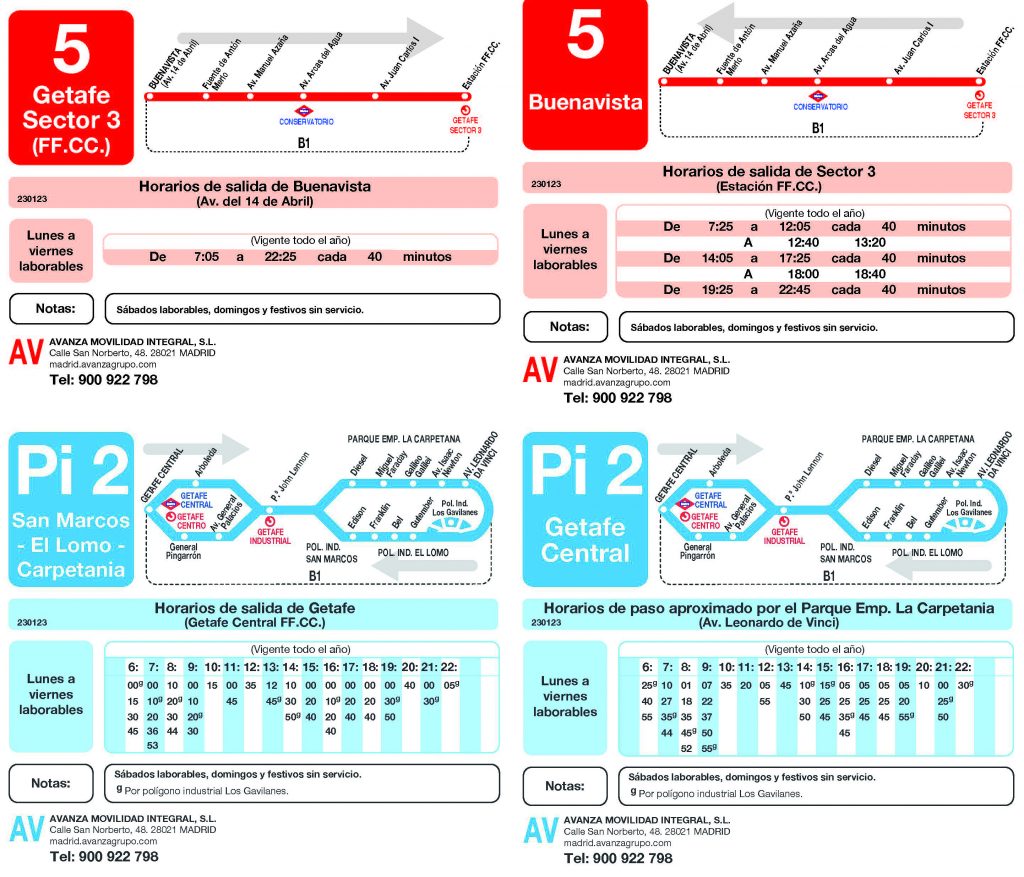 La ampliación de la línea Pi2 al Área Industrial de Los Gavilanes con cinco nuevas paradas, dará servicio de transporte a los trabajadores y visitantes de esta zona industrial. Se realizarán diez salidas diarias, con inicio del servicio a las 06:00 y última salida a las 22:30 horas. Salidas de Getafe Central: 6:00-7:10-8:20-9:20-13:45-14:50-16:10-19:30-21:00-22:05 horas. Paso aproximado por Polígono Industrial Gavilanes: 6:25-7:35-8:45-9:55-14:10-15:15-16:35-19:55-21:25-22:30 horas.