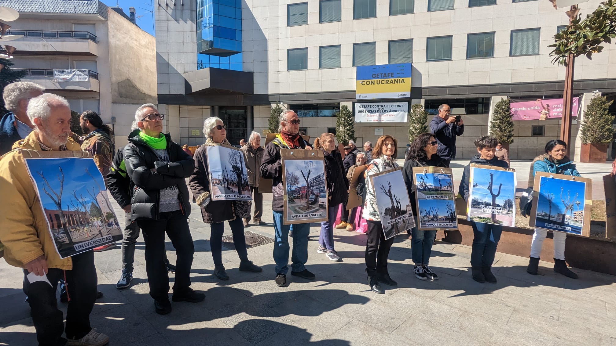 Durante su recorrido por la zona centro mostraron fotografías alusivas a las malas prácticas efectuadas en las zonas verdes de Getafe, como podas agresivas, talas, escaso mantenimiento, desaparición de zonas arbustivas, etc. Los manifestantes portaron también dos ataúdes llenos de ramas que representaban la muerte de los árboles.