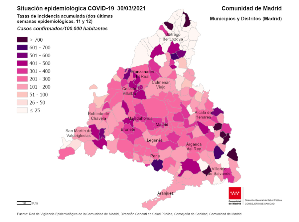 La Comunidad de Madrid ha actualizado, como cada martes, el balance epidemiológico sobre la incidencia acumulada (IA) de coronavirus en la región a 14 días, produciéndose un repunte en las grandes ciudades de más de 50.000 habitantes del sur de Madrid, con respecto a hace una semana.
