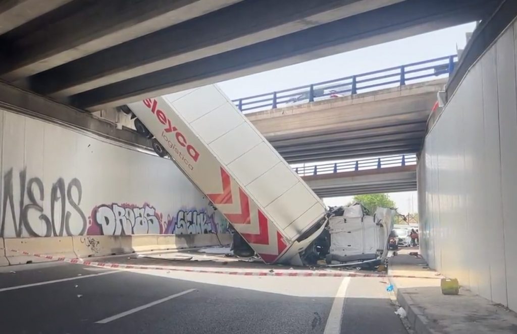El vehículo se ha precipitado desde un puente, quedando parte de la trasera del camión en la M-50 y la cabeza hacia un ramal de la R-4. Cuando han llegado los bomberos de la Comunidad y los técnicos de emergencias sanitarias del SUMMA-112, el conductor y único ocupante del camión, un hombre de 43 años, había salido ya a la carretera. No obstante, ha sido trasladado al Hospital 12 de Octubre de Madrid en estado leve.