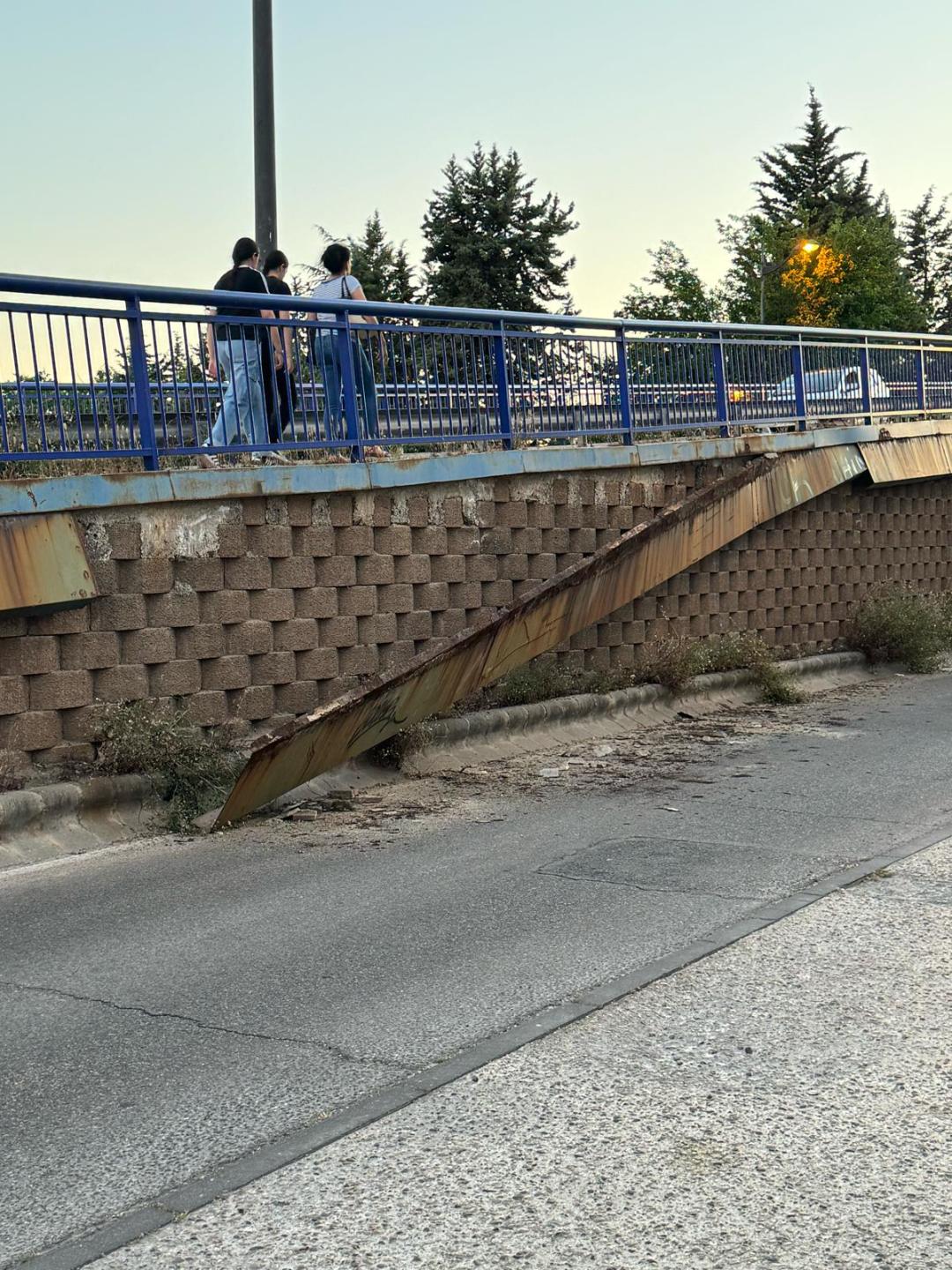 Imagen de la plancha que se ha desprendido de la cornisa del puente (foto: Al Cabo de la Calle)
