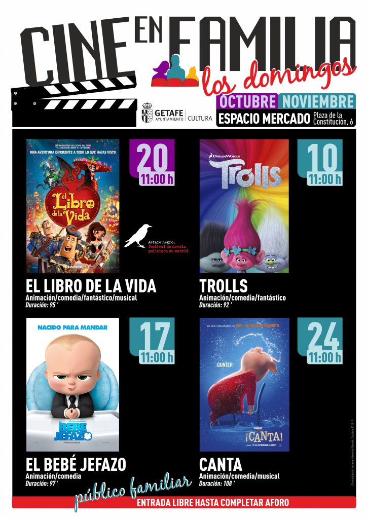 El Ayuntamiento de Getafe vuelve a ofrecer su programación de Cine en familia los domingos. Las sesiones para público familiar son gratuitas hasta completar aforo y tendrán lugar en el Espacio Mercado a las 11.00 horas. El ciclo comienza el próximo domingo, 20 de octubre, con la proyección de El libro de la vida.