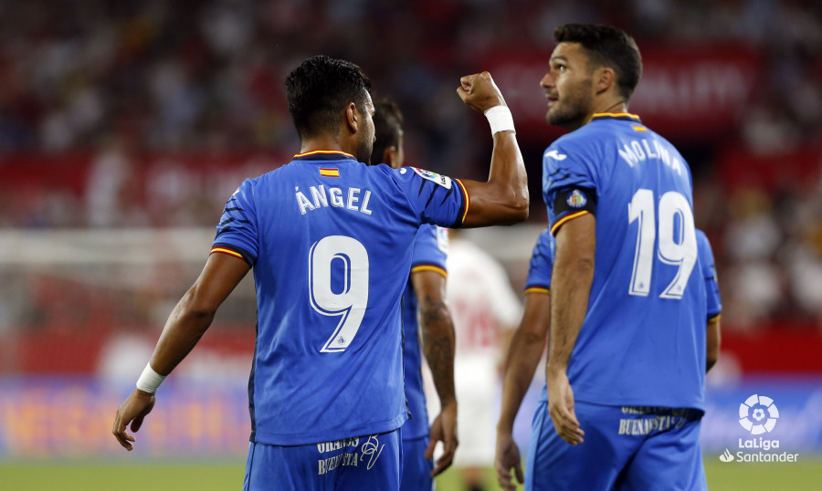 El Getafe obtuvo un triunfo tan sorprendente como merecido en su visita al Sánchez Pizjuán. Los de Bordalás firmaron un primer tiempo para enmarcar y encontraron en la figura de Ángel al artillero idóneo para noquear al conjunto hispalense con dos goles (minutos 3′ y 37′) que confirman el magnífico estado de forma del delantero tinerfeño.
