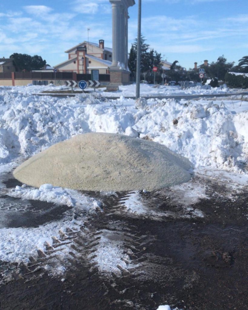 Durante la noche, el Ayuntamiento de Griñón recibió 25.000 kilos de sal y esta mañana otros 27.000 kilos, que se suman a los 10.500 kilos que cedió este miércoles el municipio de Serranillos del Valle.