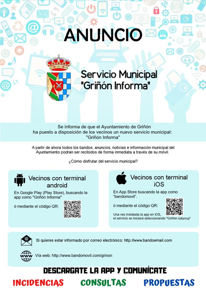 El Ayuntamiento de Griñón ha lanzado una aplicación móvil para informar a todos los vecinos en tiempo real de las nuevas medidas que se van estableciendo en el municipio y a nivel nacional frente al coronavirus.