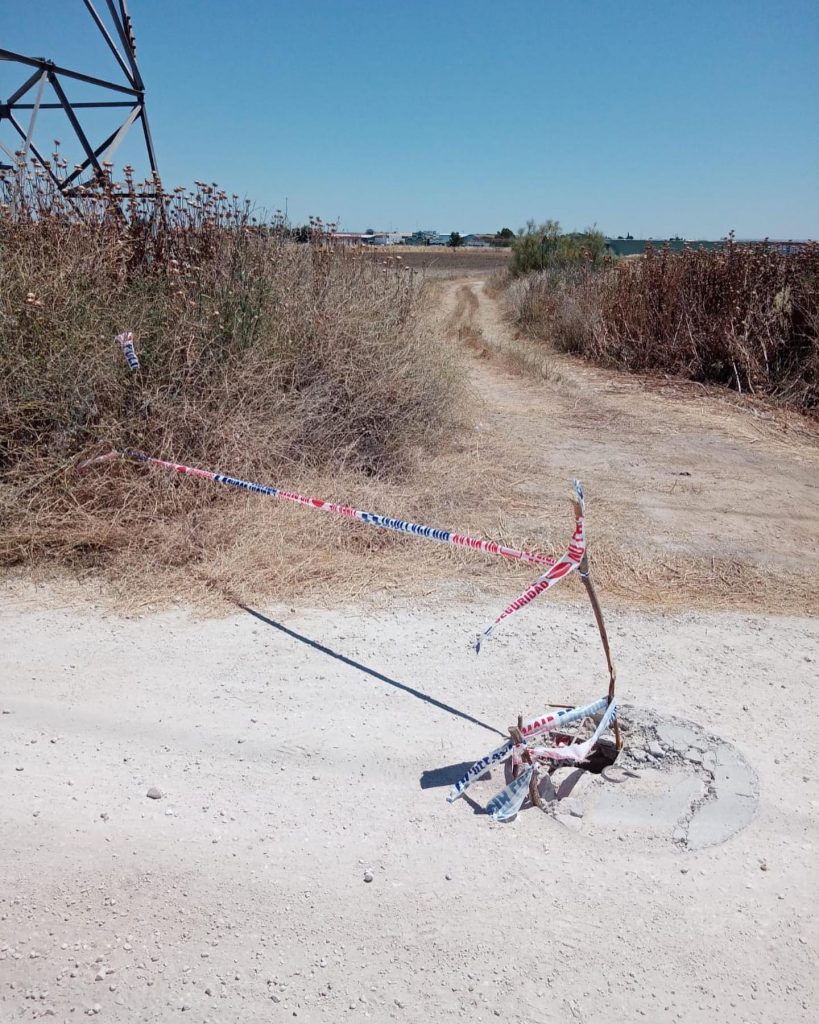 La Policía Local de Griñón ha procedido a precintar una arqueta en mal estado, situada en la Cañada Toledana, en el camino hacia Cubas, y que representaba un peligro para los vecinos que por allí transitan.