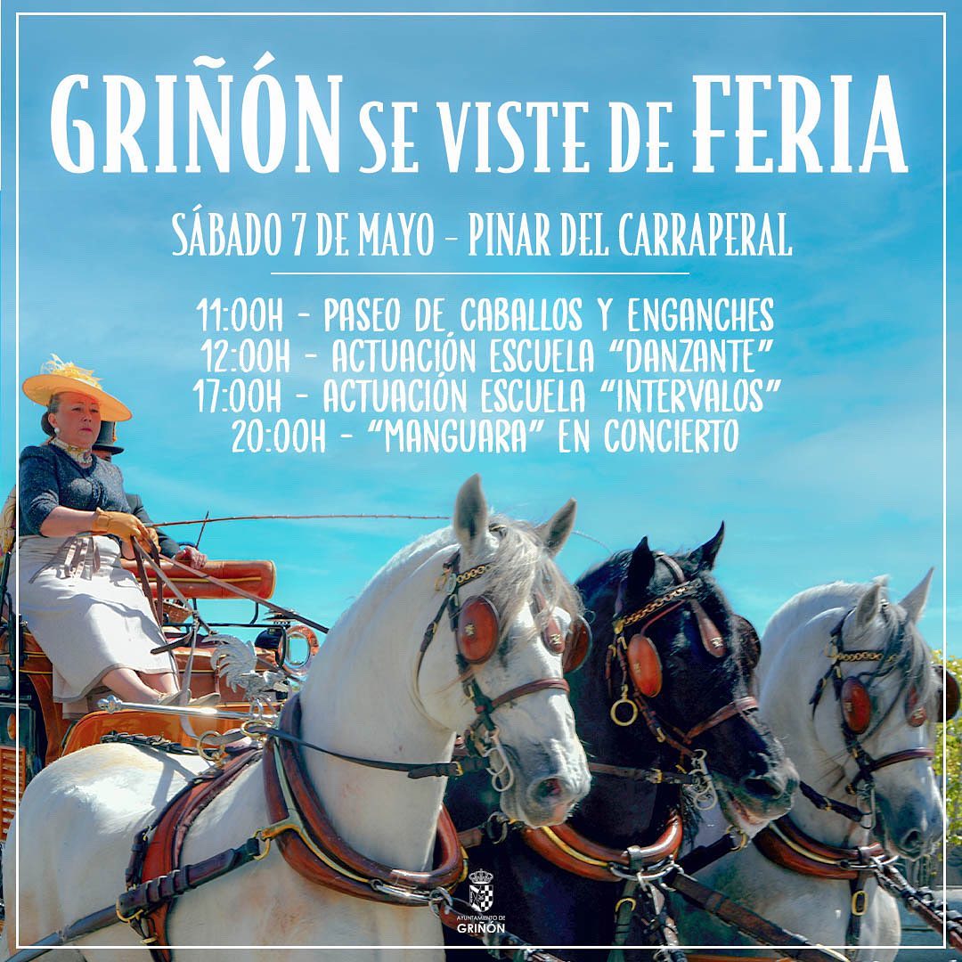‘Griñón se viste de Feria’. Con este lema, el sábado 7 de mayo, el Pinar del Carraperal acogerá una jornada de música, danza, atracciones y hasta un paseo a caballo por las calles de la localidad, partiendo a las 11.00 horas desde el recinto ferial, hasta el mismo Pinar.