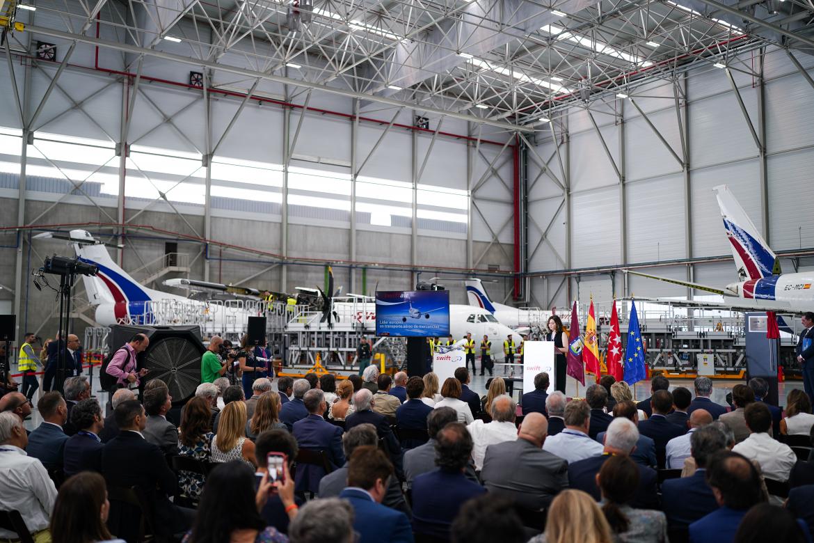 En el acto de inauguración del hangar de Swiftair, Almeida ha indicado que el «salto cualitativo y cuantitativo» de la compañía a lo largo de los últimos años, del todo «espectacular», en cierta manera «también refleja y es una metáfora de lo que ha sido la evolución de Madrid durante las últimas décadas».