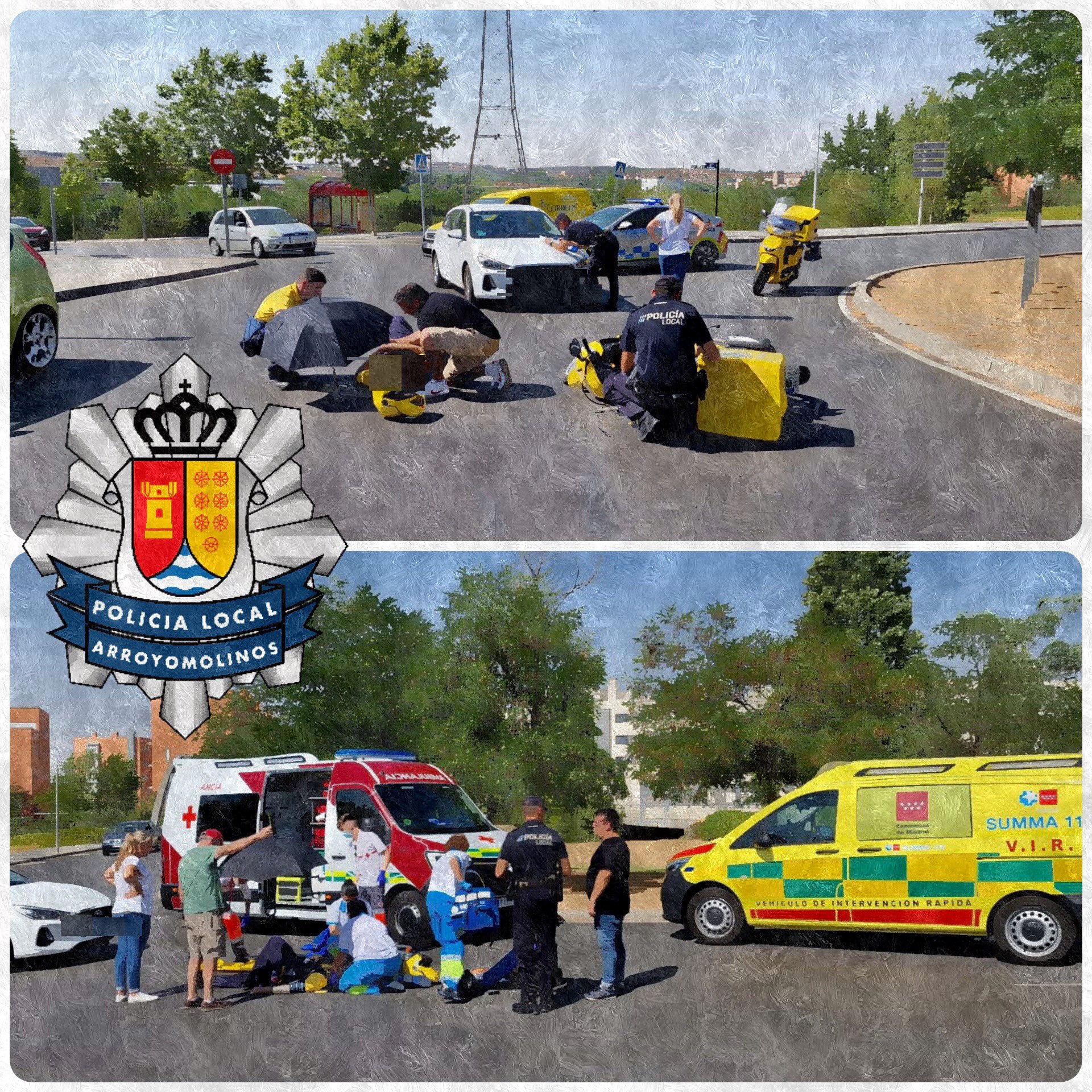 Un motorista ha resultado herido en Arroyomolinos tras chocar contra un turismo en una rotonda del municipio, según ha informado la Policía Local.