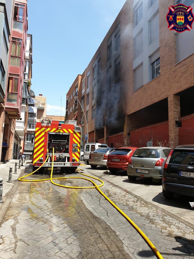 Cuatro heridos leves por intoxicación de humo en el incendio de un local en Alcorcón