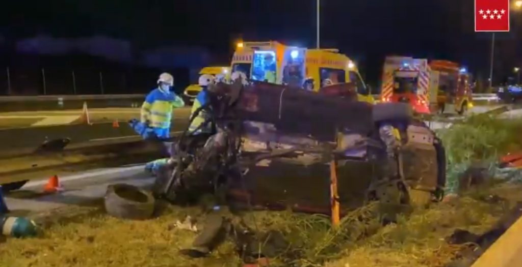 Según relatan desde el 112 Emergencias de la Comunidad de Madrid, el accidente ha tenido lugar en la medianoche del domingo al lunes, 31 de agosto, cuando los dos vehículos han colisionado, quedando ambos volcados, uno en sentido contrario.