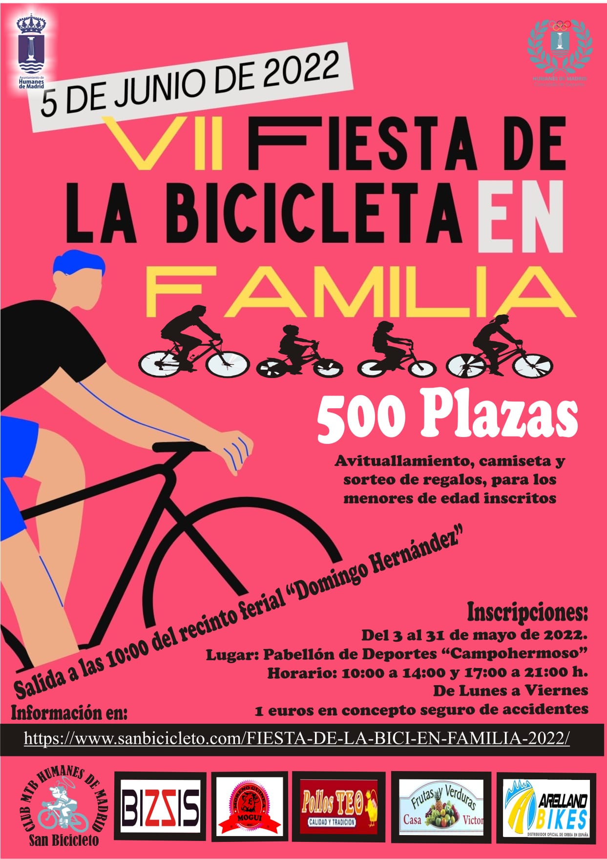 Después de dos años de ausencia debido a la pandemia, la fiesta de la bicicleta en familia regresa a Humanes de Madrid el próximo 5 de junio. Será la séptima edición del evento que organiza el Club MTB San Bicicleto con la colaboración de la Concejalía de Deportes de Humanes.
