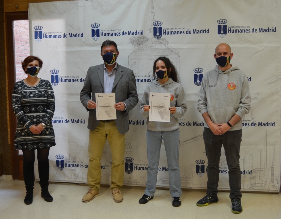 El acto de la firma se desarrolló en el salón de Plenos del Consistorio humanense y en el mismo estuvieron también presentes la concejal de Deportes, María Paloma López, y el director deportivo del CDE Baloncesto Femenino Humanes, Sergio Hidalgo.