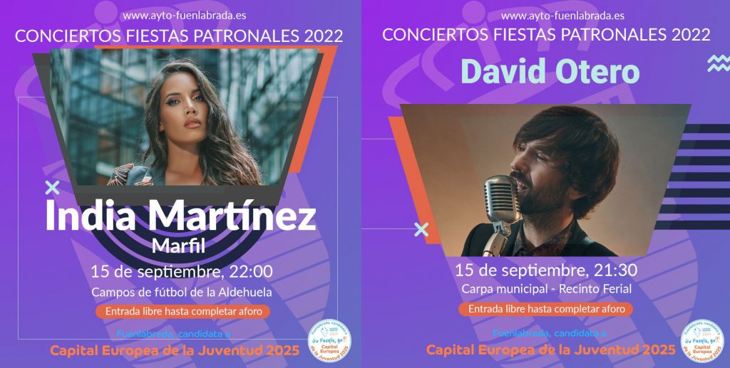 Tanto David Otero como India Martínez actuarán el 15 de septiembre en Fuenlabrada. El primero, a partir de las 21.30 horas en el recinto ferial; mientras que la segunda lo hará a las 22.00 horas desde la Aldehuela En ambos casos, como en los anteriores, las entradas serán gratuitas hasta completar el aforo.