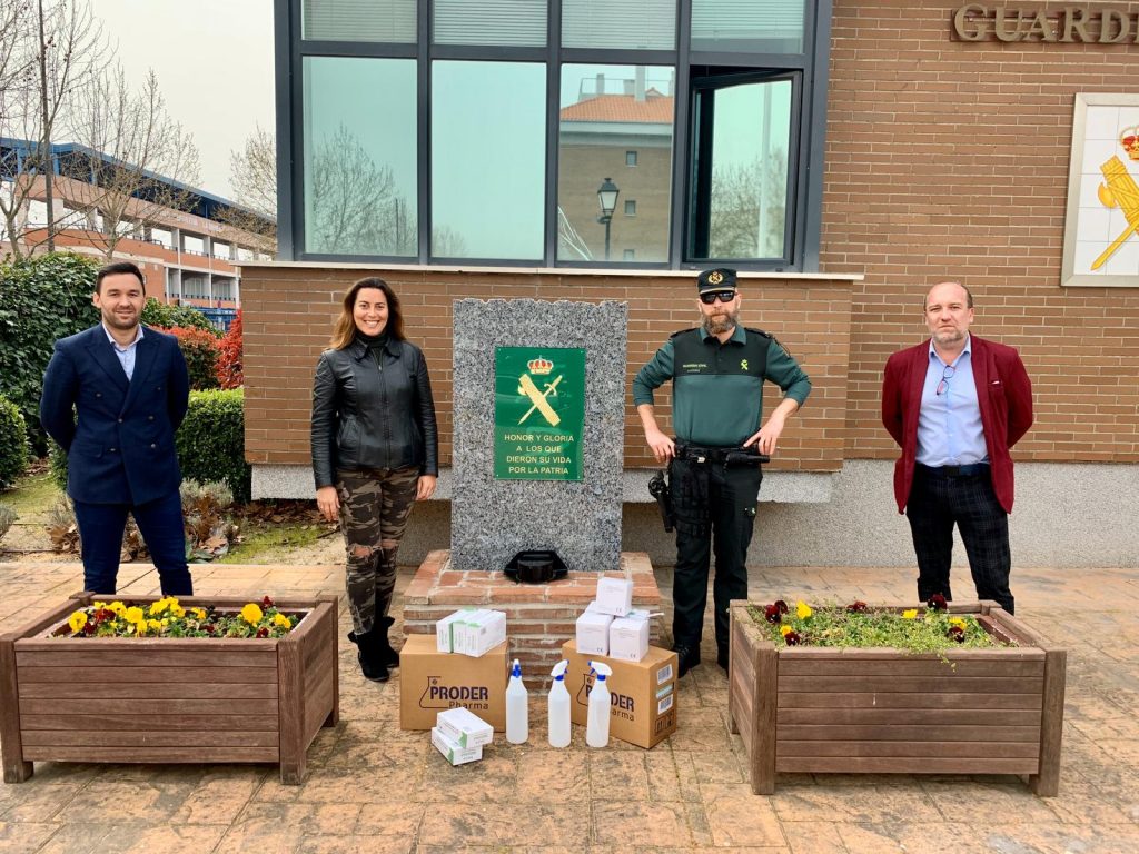 La alcaldesa de Arroyomolinos entrega a la Guardia Civil material de protección frente al coronavirus