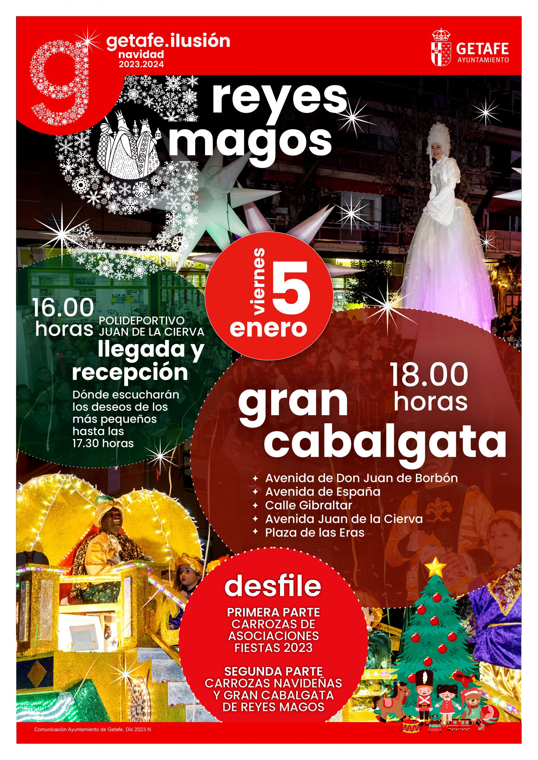 La Cabalgata de Reyes de Getafe tendrá lugar este viernes 5 de enero con la mayor presencia de carrozas de su historia, ya que en esta ocasión serán nada menos que 19 al sumarse las 8 carrozas de asociaciones del municipio que no pudieron desfilar en las