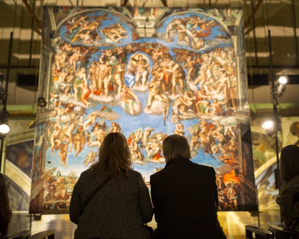 Y ahora la obra cumbre del genio italiano: La Capilla Sixtina, puede disfrutarse sin salir de Madrid. Concretamente, en la Sala Azca del Centro Comercial Moda Shopping, ubicado en la avenida del General Perón, en la capital, que acoge una exposición única que recrea los frescos, a través de 34 reproducciones en paneles de 5 metros aproximadamente. Una exhibición creada por los organizadores de otras exposiciones temáticas como Star Trek, Tutankamón, Titanic, Frida Kahlo, o Michael Jackson, y que previamente ha pasado por ciudades como Phoenix, Chicago, Viena, Shanghái o Berlín.