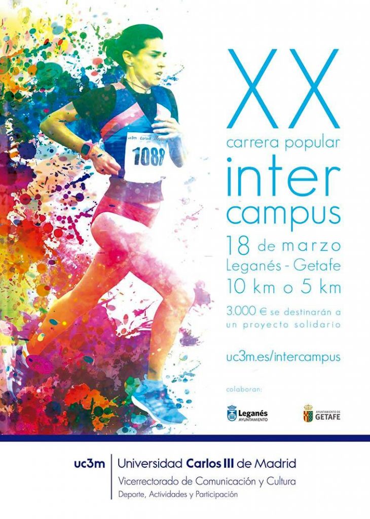 El próximo 18 de marzo tendrá lugar una nueva edición de la Carrera Intercampus, que en esta ocasión será muy especial teniendo en cuenta que celebra su 20º aniversario uniendo dos de los tres campus de la Universidad Carlos III. En esta ocasión la salida estará en Leganés y la línea de meta en Getafe. La prueba de 10 kilómetros arrancará a las 10.00 horas y la de 5 kilómetros a las 9.30.