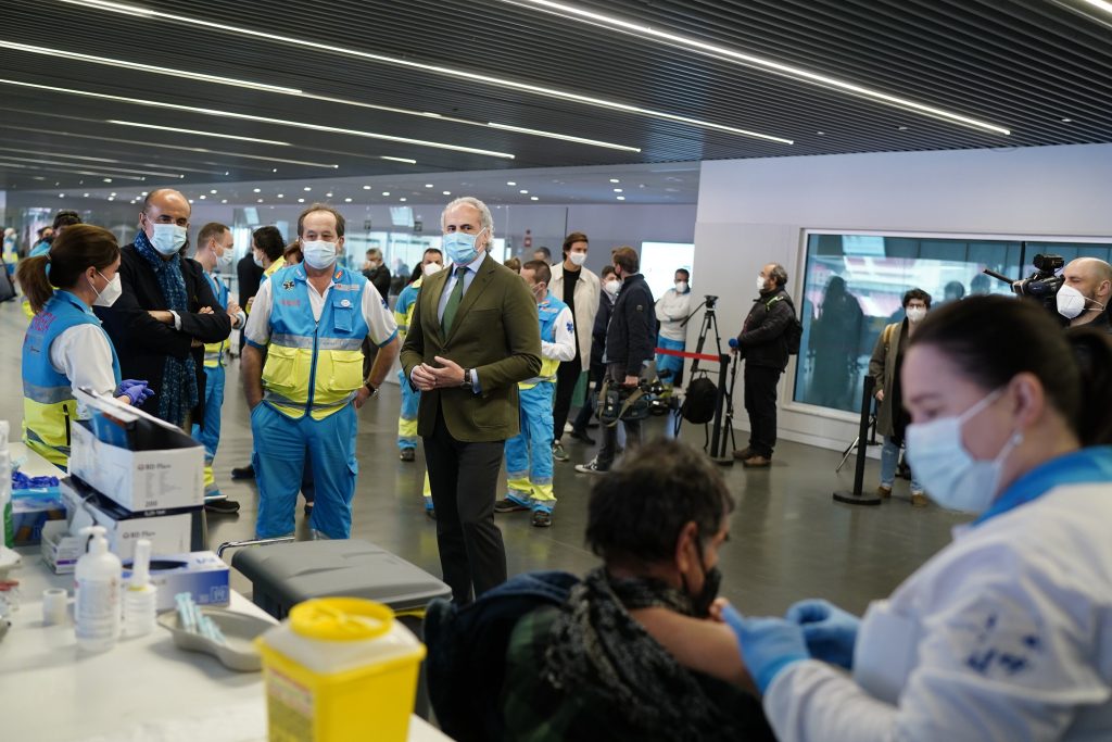 La Comunidad de Madrid comienza desde este viernes a administrar primeras dosis de la vacuna contra el Covid-19 sin necesidad de cita previa en el Hospital Enfermera Isabel Zendal y el Wizink Center en horario nocturno, entre las 21.00 y las 8.00 horas, ha informado el Gobierno regional en un comunicado.