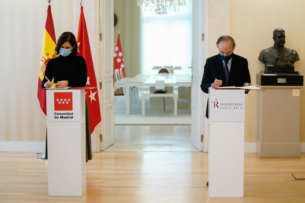 La presidenta de la Comunidad de Madrid, Isabel Díaz Ayuso, ha renovado este viernes con el Teatro Real, un convenio de colaboración para difundir la música, las artes y la cultura entre los más pequeños, jóvenes y estudiantes madrileños.