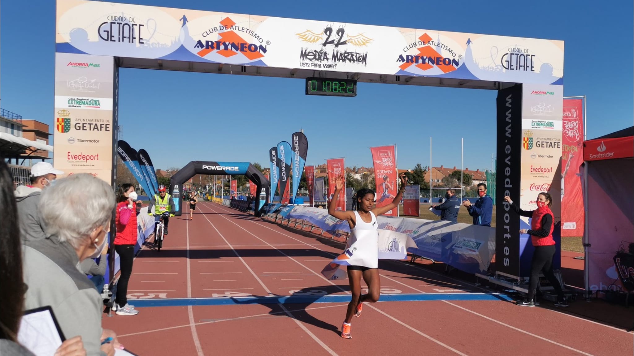 La etíope Yemer Betelihem se convirtió en la gran protagonista de la XXII Media Maratón de de Getafe celebrada este pasado domingo. Betelihem pulverizó el récord de la prueba al cruzar la línea de meta en un tiempo de 1:08:22 (a 3:15 el kilómetro), un registro que rebajaba en más de tres minutos la plusmarca que ostentaba la marroquí Fátima Ayachi desde la edición de 2011 (1:11:39). Su 9º puesto en la general final refuerza todavía más lo que fue una portentosa actuación.