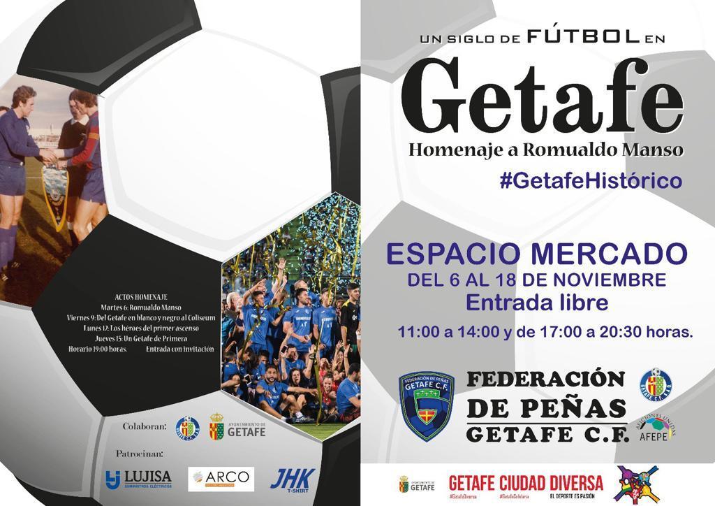 El Espacio Mercado de Getafe albergará entre el 6 y el 18 de noviembre la exposición ‘Un siglo de fútbol en Getafe, homenaje a Romualdo Manso’,  un evento organizado por la Federación de Peñas del Getafe con la colaboración, entre otros, del Getafe CF y el Ayuntamiento de Getafe.