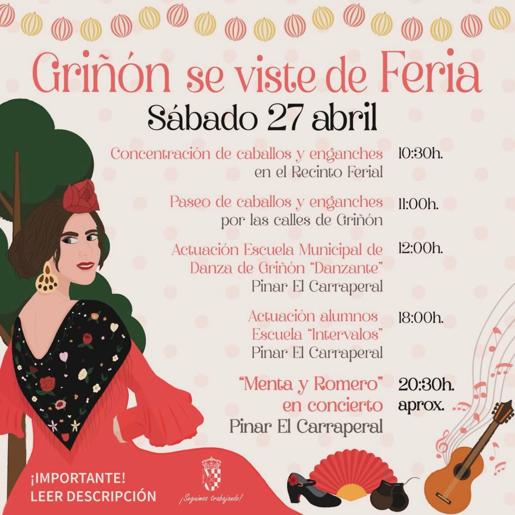 Griñón se vestirá de feria el próximo fin de semana con numerosas actividades organizadas para el sábado 27 de abril. El municipio ha decidido apostar un año más por hacer una jornada donde el campo sea el protagonista y los caballos y flamencos tengan un lugar importante en la localidad.