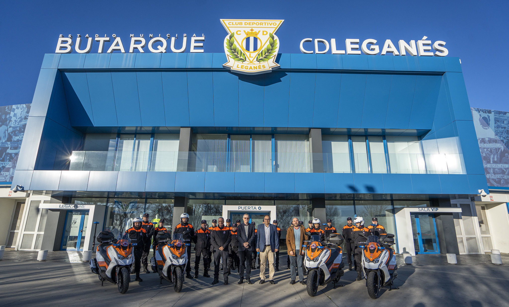 El acto de entrega ha tenido lugar en el estadio de Butarque coincidiendo con la fecha de la tradicional Cabalgata de Reyes, en la que se estrenarán estos nuevos vehículos. Entre los presentes ha estado el presidente del CD Leganés, Jeff Luhnow; el alcalde de la ciudad, Santiago Llorente; el concejal de Seguridad Ciudadana, Óscar Oliveira; y el responsable de Protección Civil en Leganés, Teodoro Becedas.