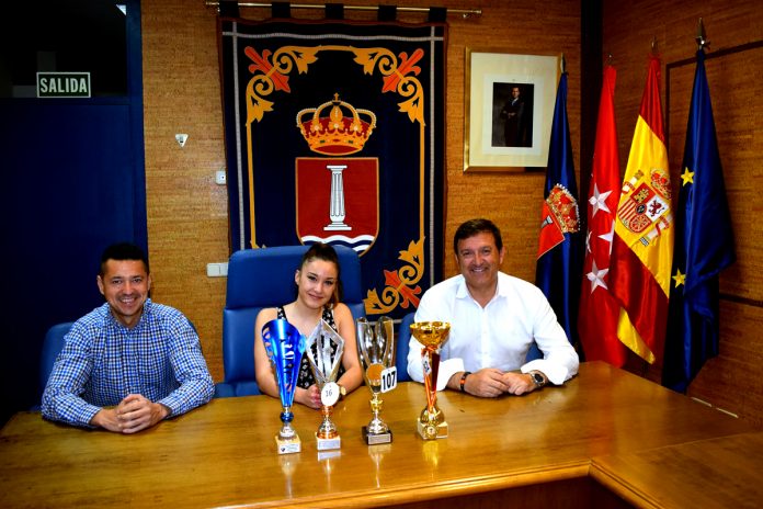 El alcalde de Humanes de Madrid, José Antonio Sánchez, acompañado por el concejal de Deportes, Óscar Lalanne, ha recibido a Marta Pareja en el Consistorio, donde le han felicitado por este éxito cosechado.