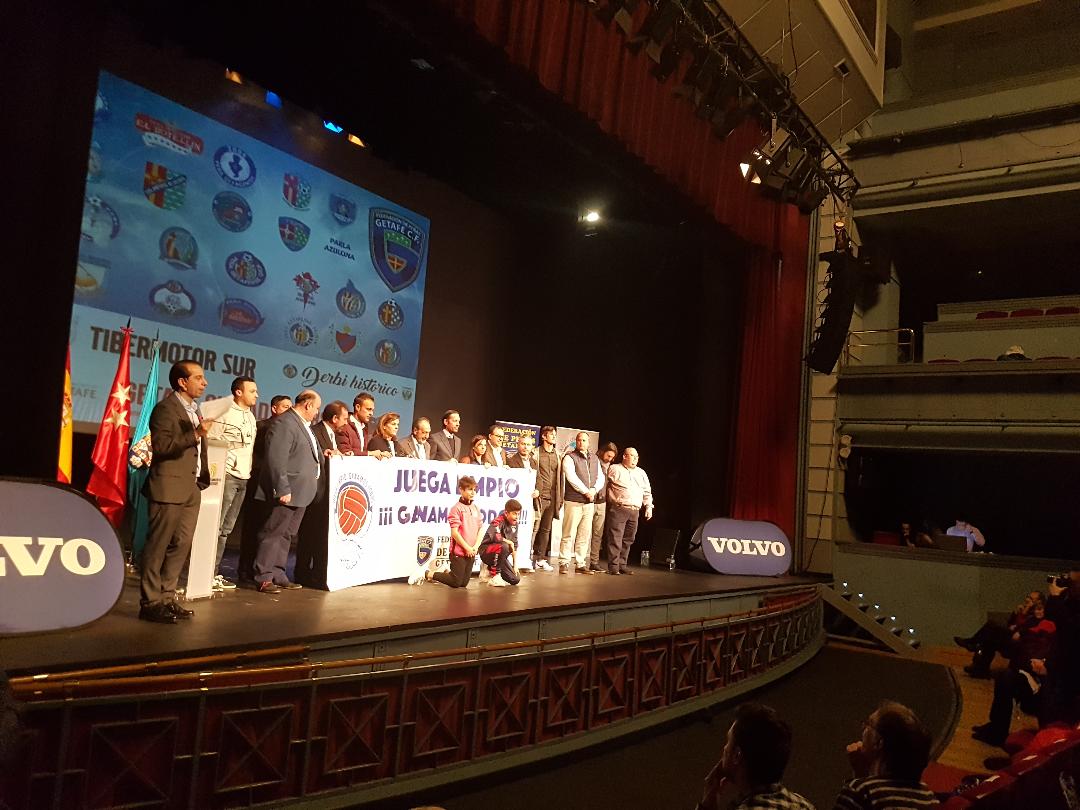 El teatro García Lorca de Getafe fue escenario este jueves de la III Jornada Juego Limpio que organiza la Federación de Peñas del Getafe y que en esta ocasión estuvo dedicada al histórico derbi del sur que este domingo disputan en el Coliseum el Getafe CF y el CD Leganés.