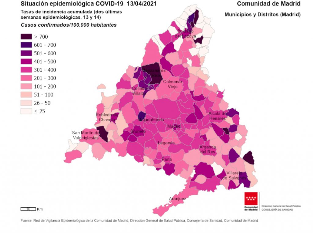 Por su parte en Alcorcón, la incidencia sube ya hasta los 318 casos por 100.000 habitantes, con dos zonas básicas de salud como Ramón y Cajal y Doctor Trueta, con una IA de 441 y 438 respectivamente, superando el umbral marcado por la Comunidad de Madrid para imponer restricciones.
