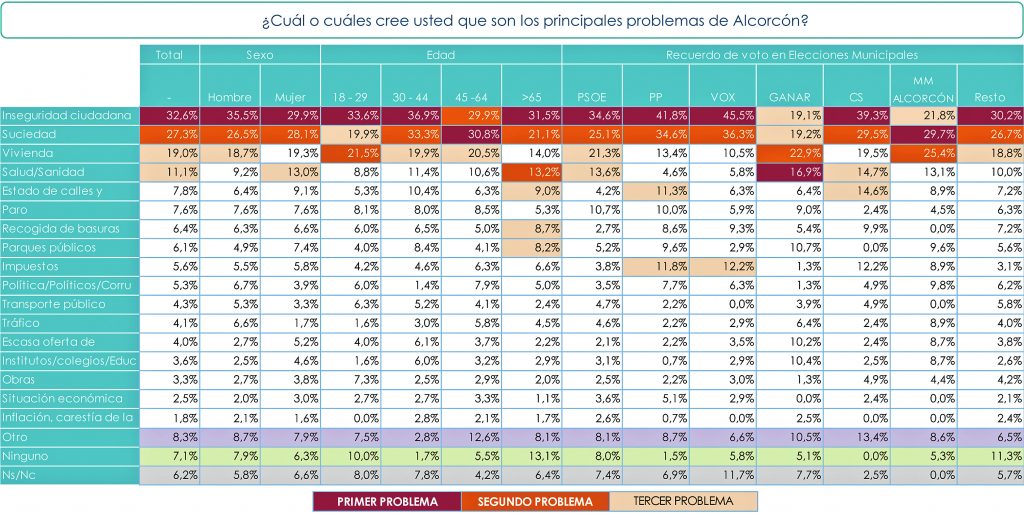1 de cada 3 votantes del PSOE creen que la inseguridad es el principal problema a resolver en Alcorcón