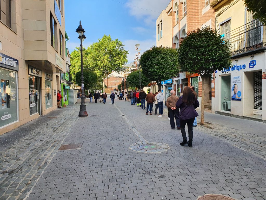 La imagen que acompaña esta información corresponde a los aledaños del Espacio Mercado de Getafe, donde a las 9.30 horas más de medio centenar de personas aguardaban turno para ejercer su derecho al voto.